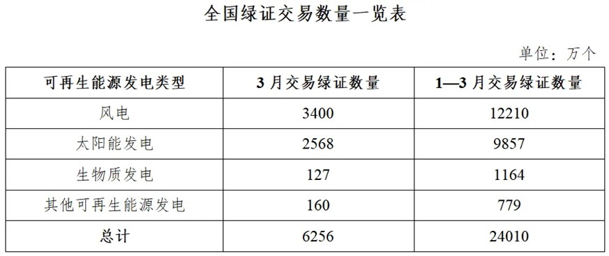 2026年3月,全国交易绿证6256万个,其中绿色电力交易绿证3270万个。